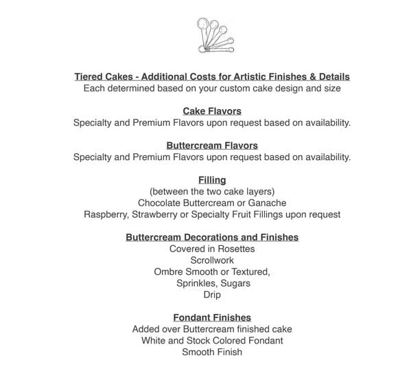 Tiered Cake Premium Fees for Custom Finishes & Detail
